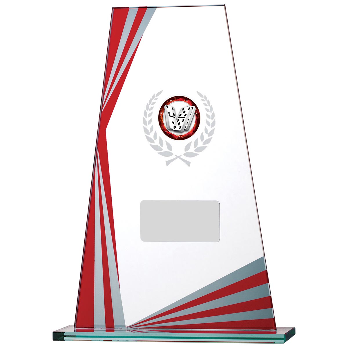 Angled Red Mirror Edge award 205mm highAngular clear glass award with red and silver detailStands on a rectangular basePrice excludes engraving