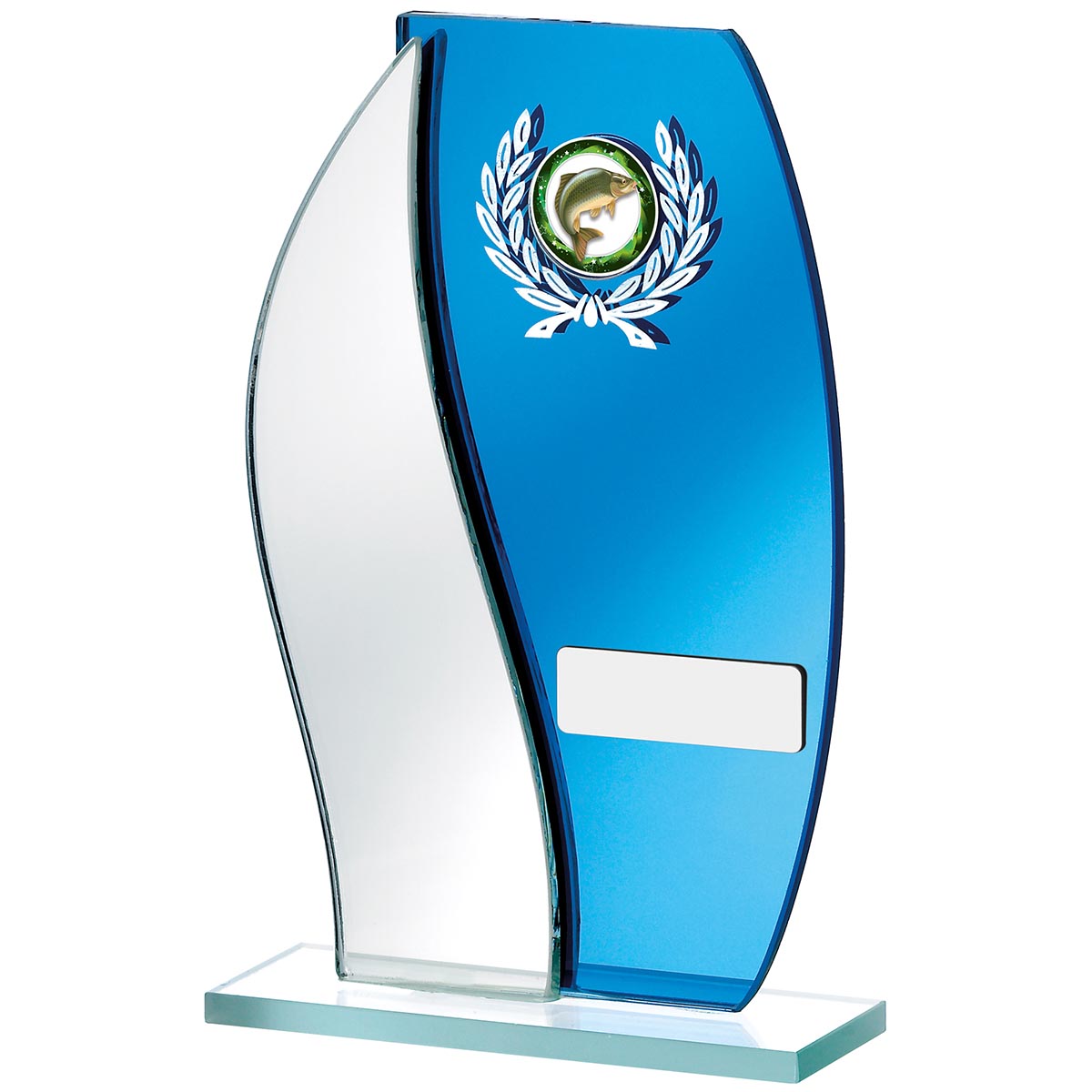 Curved Blue Mirror Glass award 185mm highCurved clear and blue glass awardStands on a rectangular basePrice excludes engraving