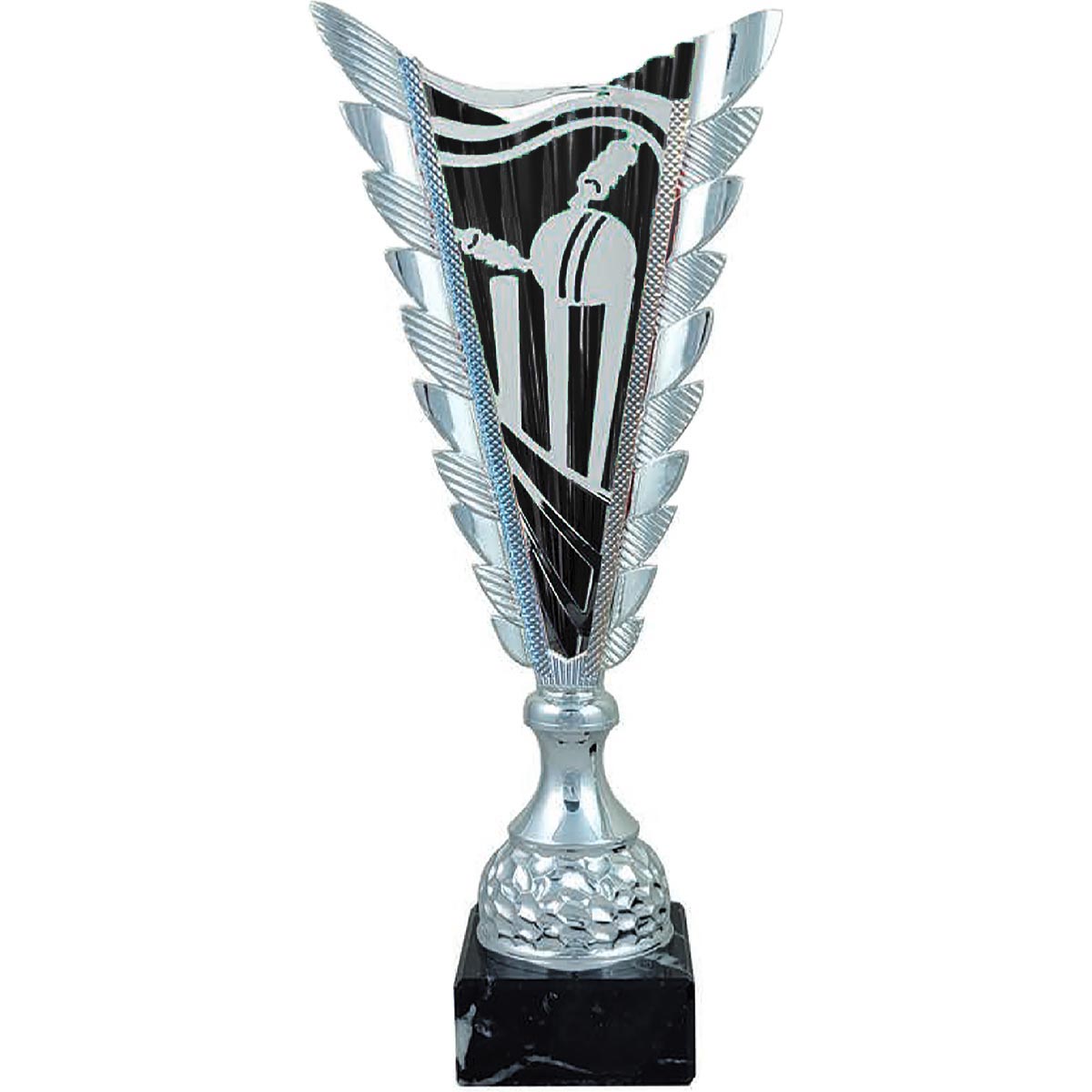 Fuego Cricket Wicket Award in plastic and marble 345mm highFeatures silver stumps and ball with metallic black background
