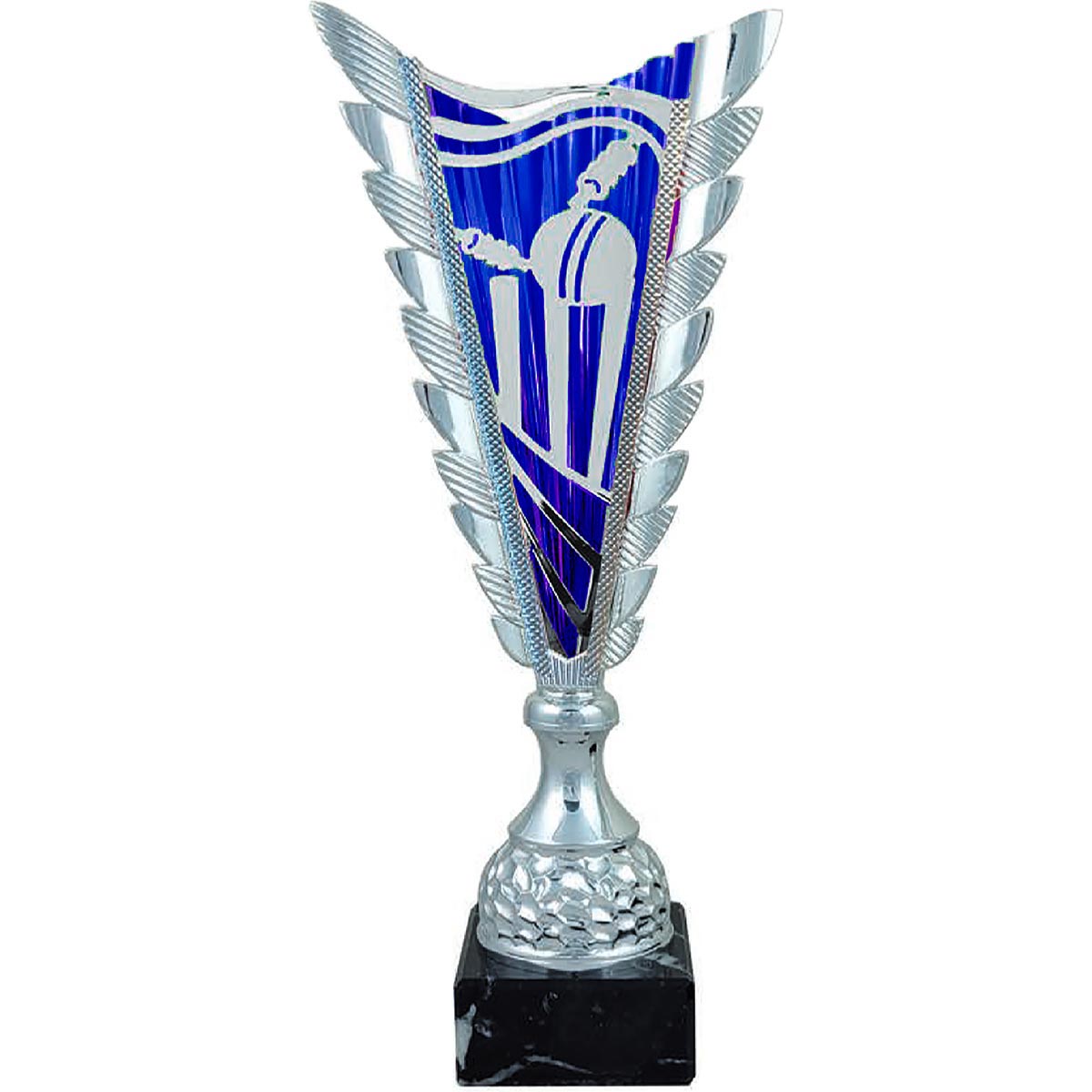 Fuego Cricket Wicket Award in plastic and marble 370mm highFeatures silver stumps and ball with metallic blue background