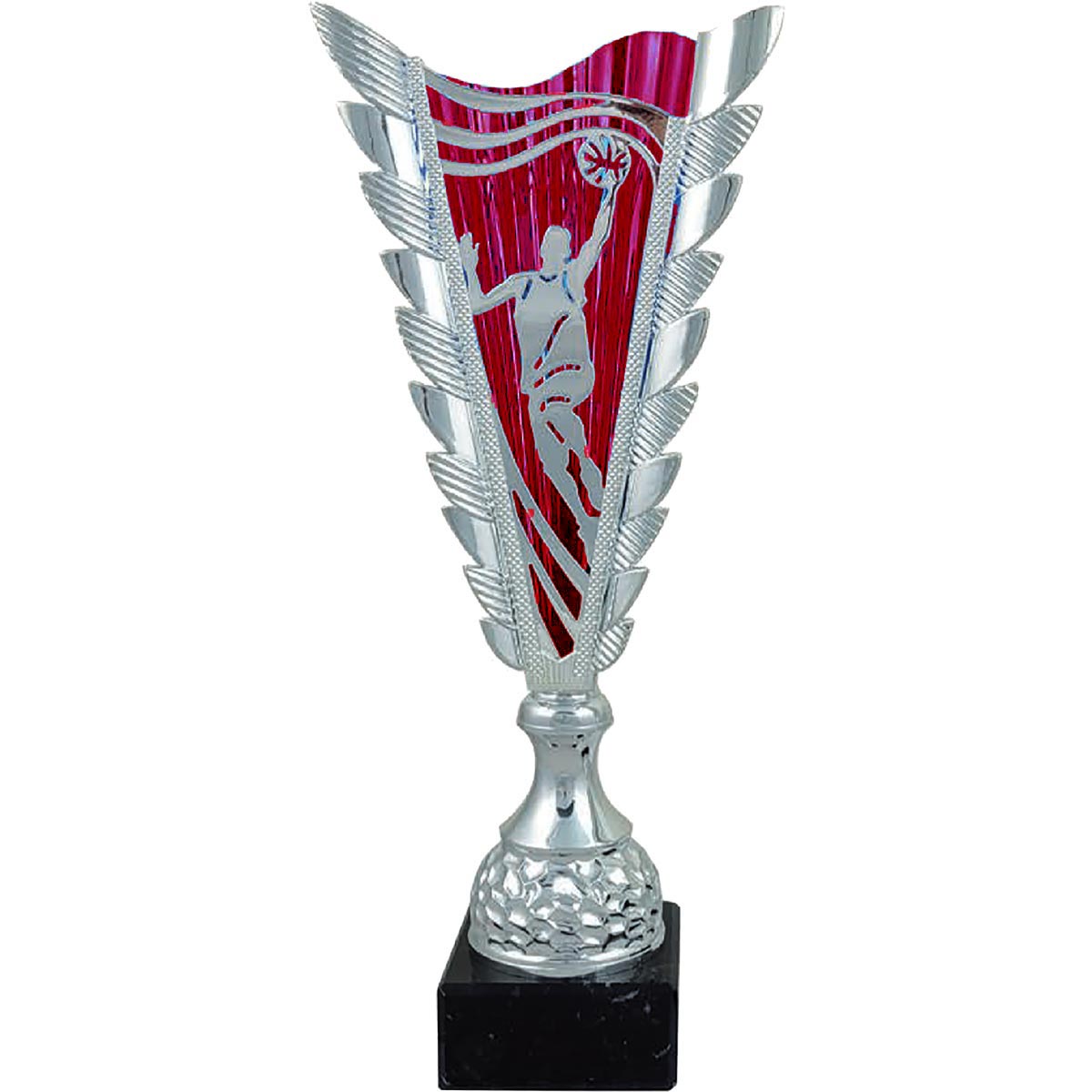 Fuego Basketball Award in plastic and marble 370mm highFeatures silver basketball player with metallic red backgroundDetailed column stands on heavy black marble baseEngraving plate can be applied to front