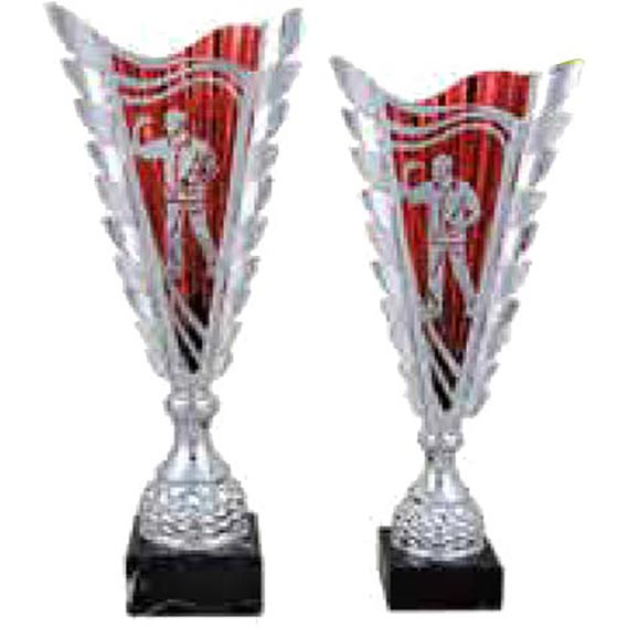 Fuego Darts Award in plastic and marble 370mm high. Features silver darts player with metallic red background. Detailed column stands on heavy black marble base. Engraving plate can be applied to front