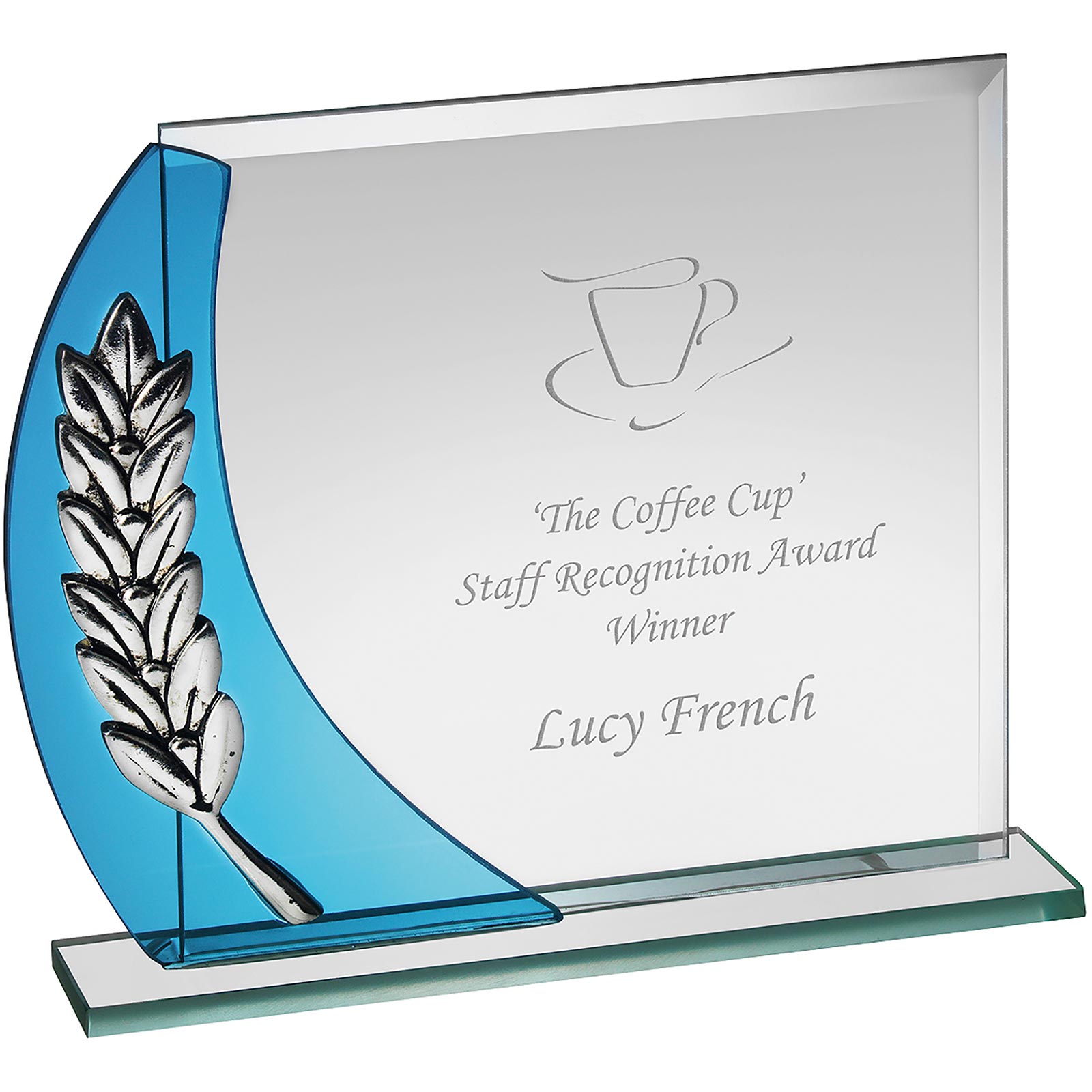 Home Glass Awards Coloured Glass Awards 6.5in x 7in Blue & Clear Wreath Award
