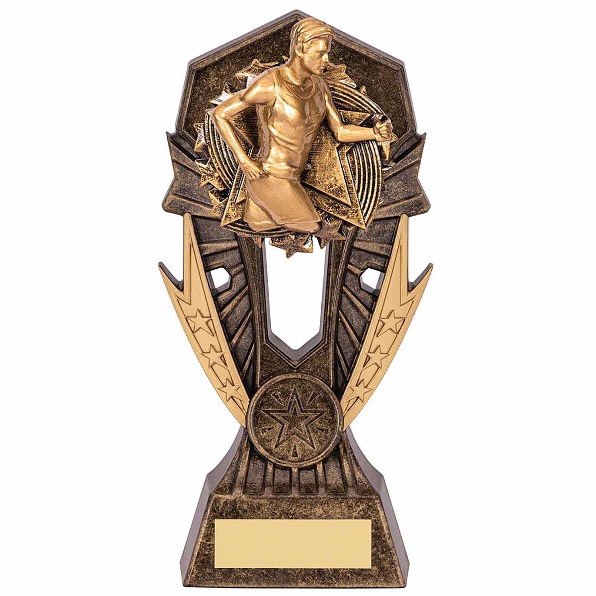 Allstar Running Male Trophy 185mm highFeatures running male on a co-ordinating gold stand Engraving plate and club badge can be applied to front