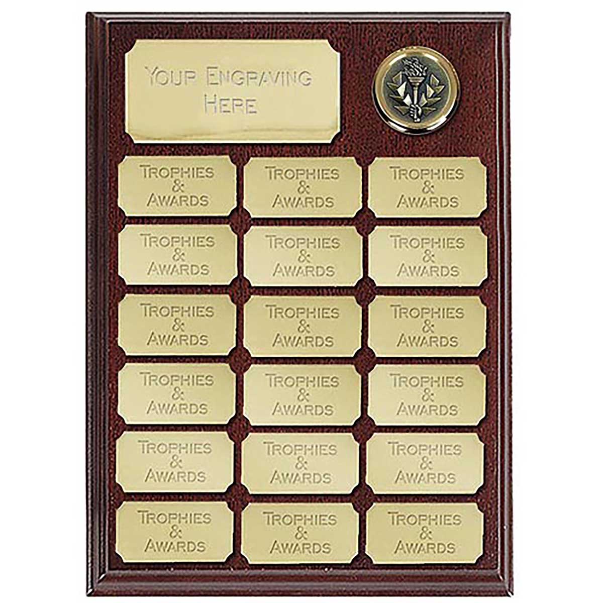 Ashfield 9 inch Presentation Plaque with 18 gold plates 43x19mm