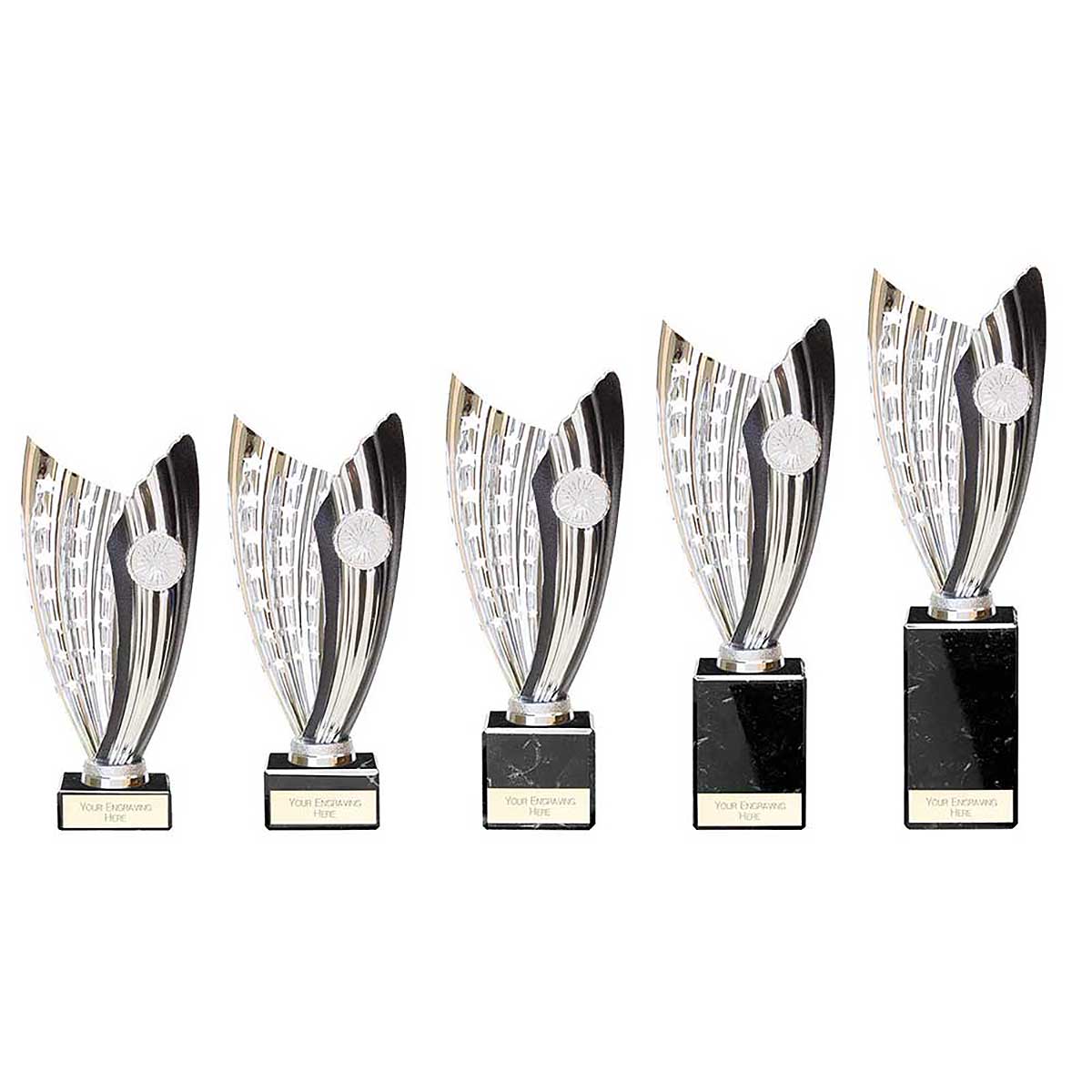 Black and silver Glamstar Legend trophy 220mmDetailed plastic silver star and coloured curve design on a black baseEngraving plate and club badge can be applied to the front