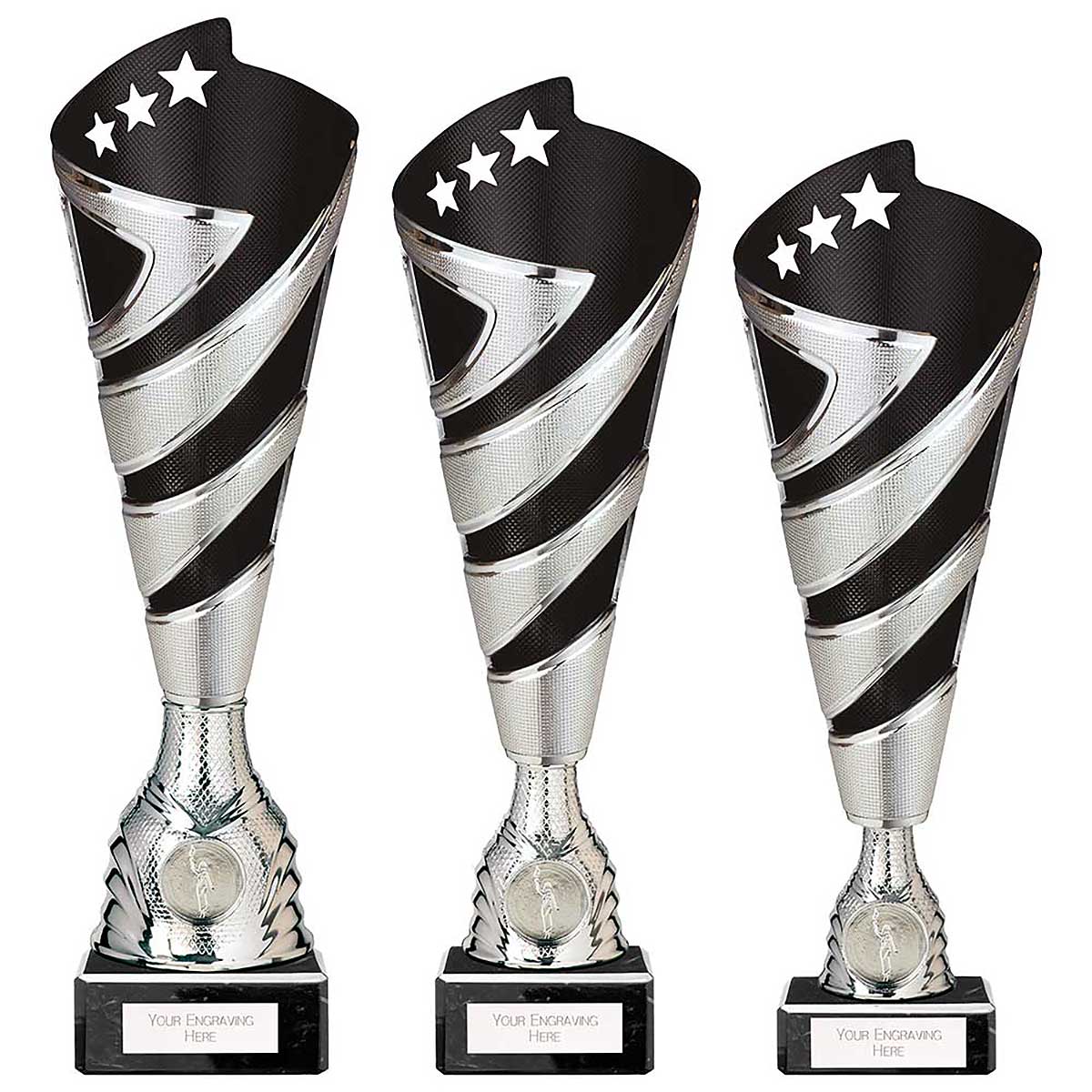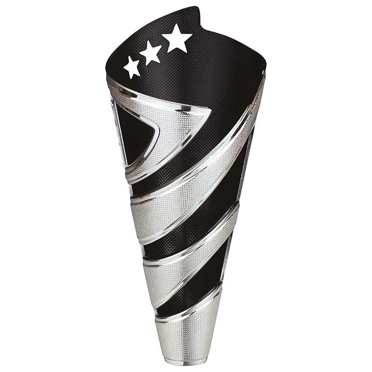 Black Hurricane Altitude Multisport Trophy 295mm high Textured plastic design on a silver riser and black stone base Engraving plate and club badge can be applied to the front