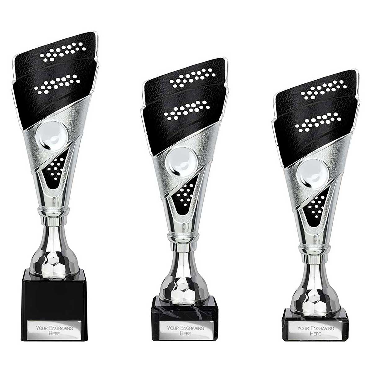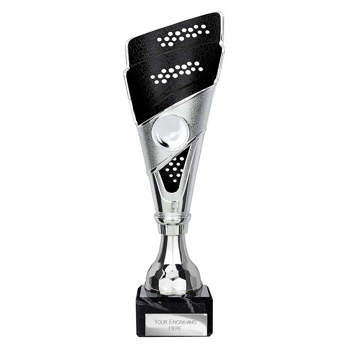Black Predator multisport trophy 230mm high Black and silver plastic design on a black stone base Engraving plate and club badge can be applied to the front