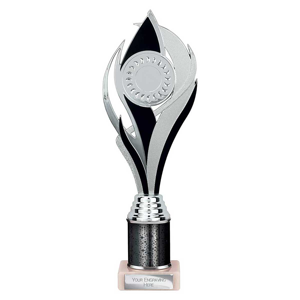 Black & Silver Super Volcano Trophy 285mm high Moulded plastic design on a superstar glitter column and stone base Engraving plate and club badge can be applied to the front