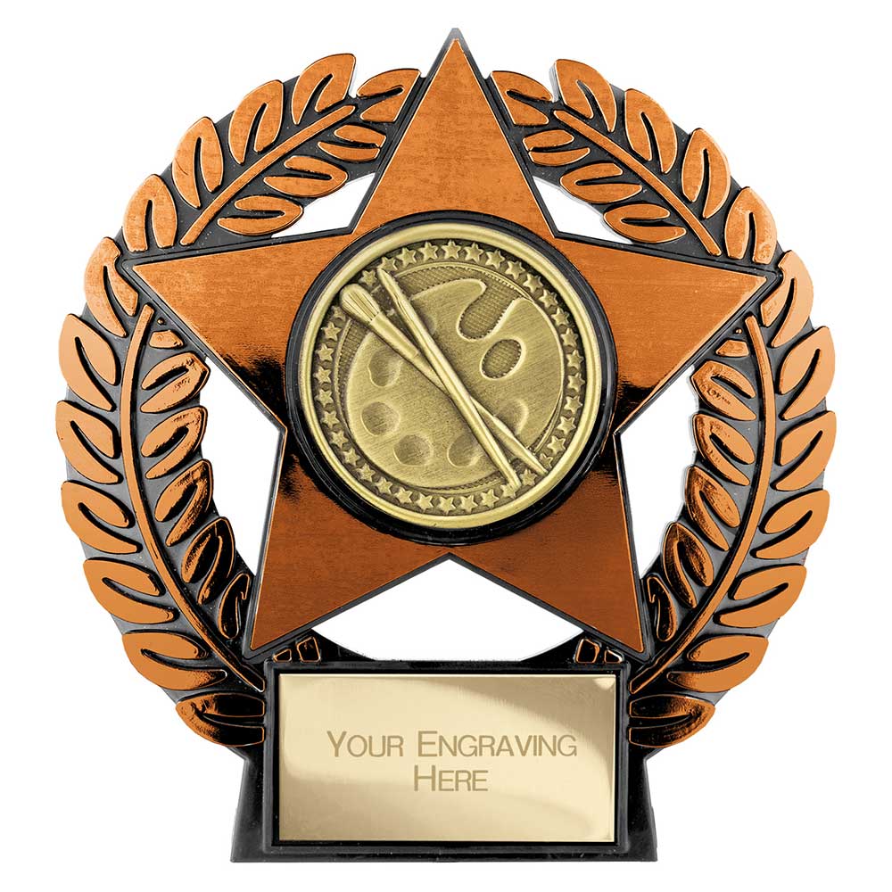 Emperor Star Bronze Art Plaque 120mm highFeatures art centre set within bronze star on laurel standEngraving plate can be applied to front