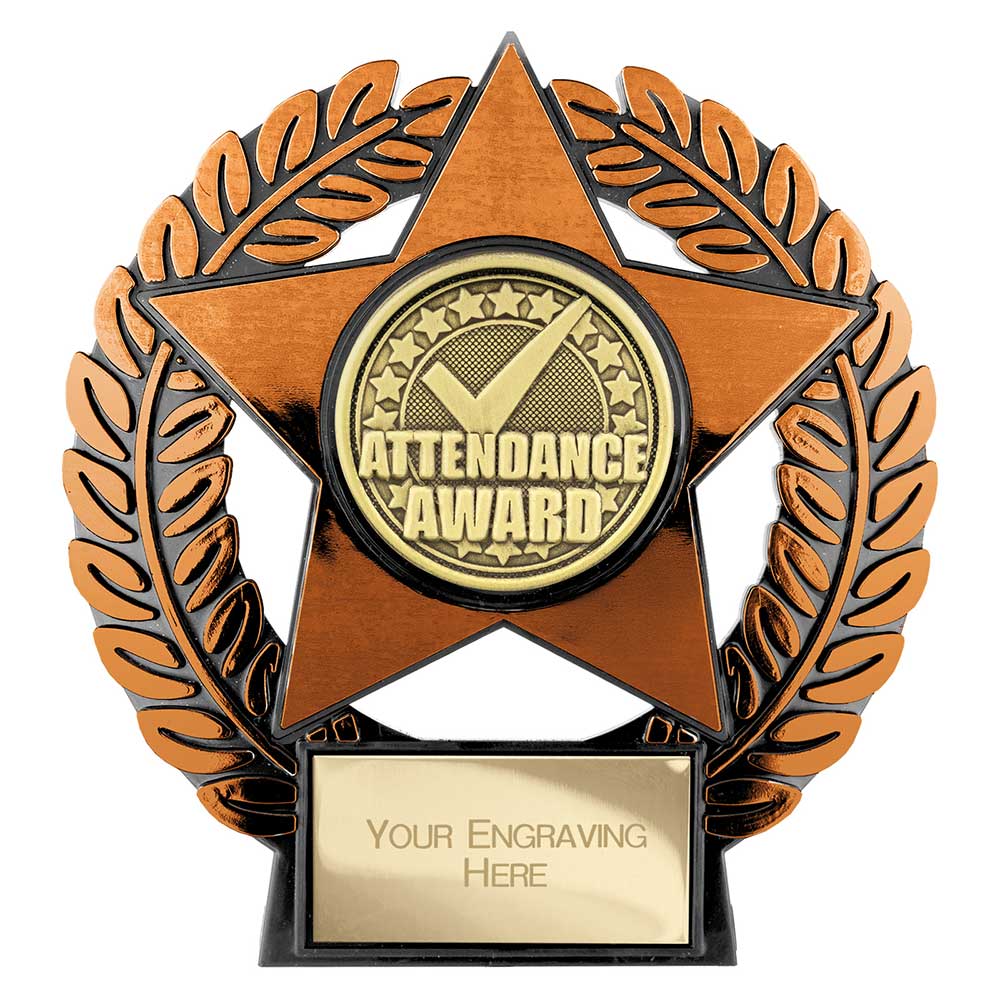 Emperor Star Bronze Attendance Award Plaque 120mm highFeatures attendance award centre set within bronze star on laurel standEngraving plate can be applied to front