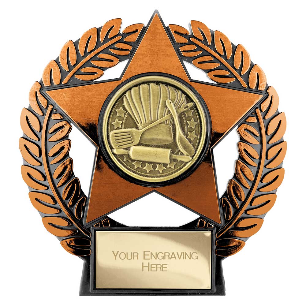 Emperor Star Bronze Cooking Plaque 120mm highFeatures cooking centre set within bronze star on laurel standEngraving plate can be applied to front