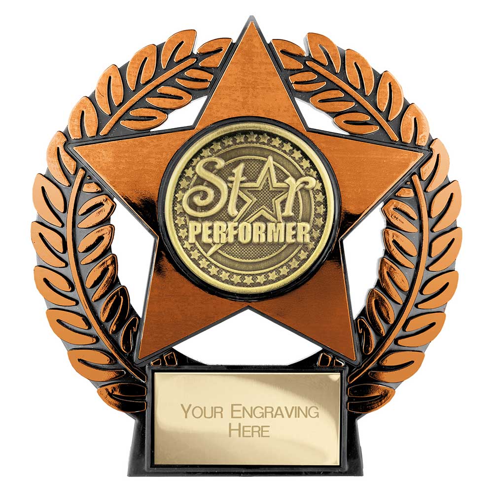 Emperor Star Bronze Star Performer Plaque 120mm highFeatures star performer centre set within bronze star on laurel standEngraving plate can be applied to front