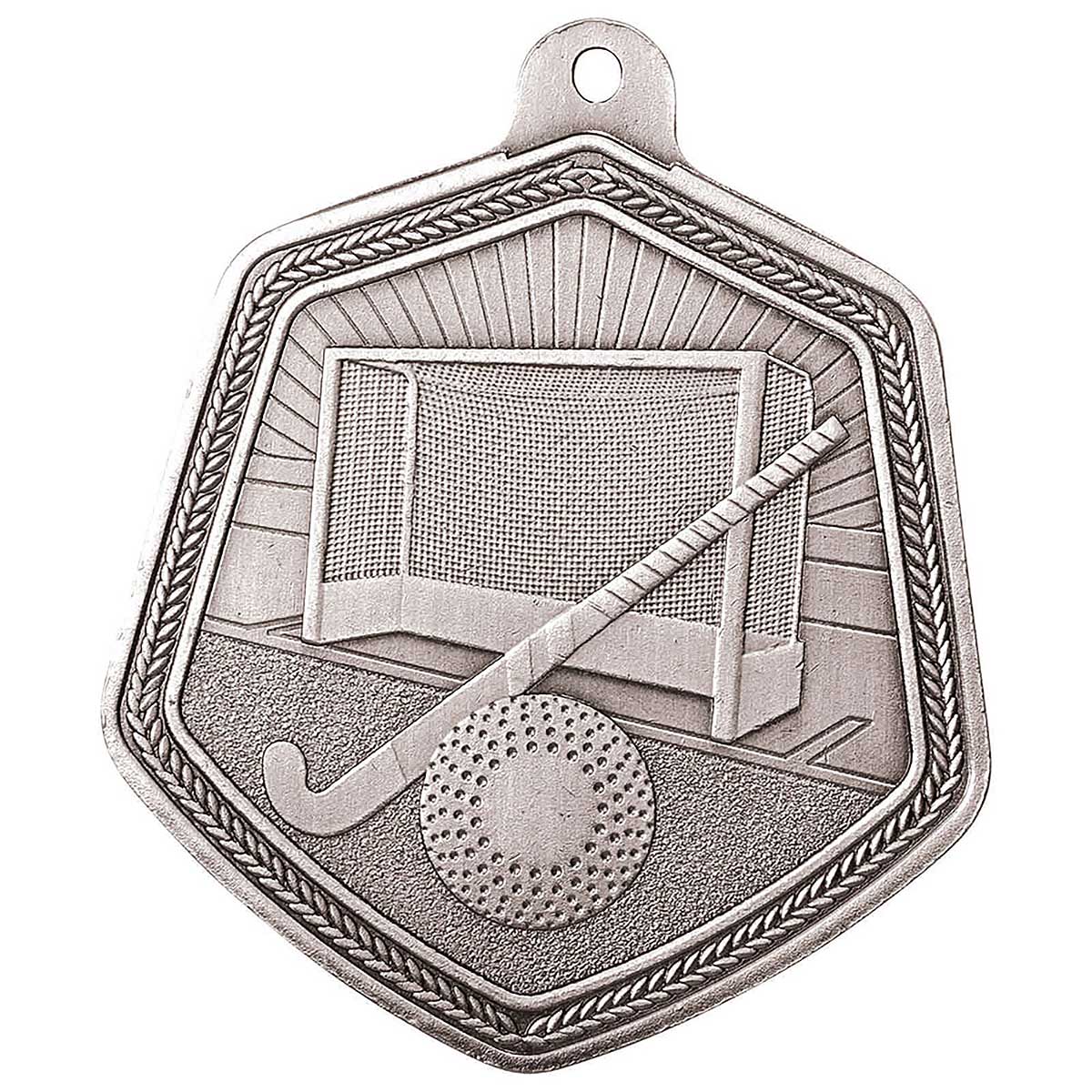 Falcon Hockey Medal Silver 65mm high 55mm at widest pointMedal loop at topSee our range of 25mm and 10mm ribbons