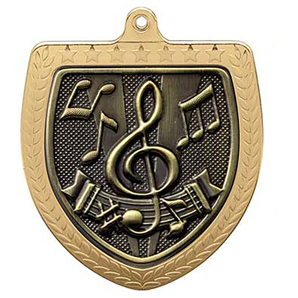 Gold Cobra Shield Music Medal 70mm at widest diameter 75mm highFeatures gold fascia to frontView our ribbons page for your colour options