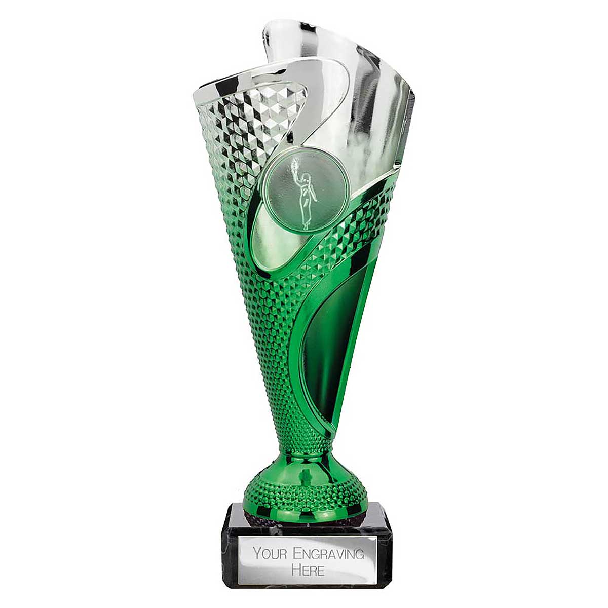 Green Silver Rodeo Multsport Award 185mm high Modern design plastic flute on a heavy stone base Engraving plate and club badge can be applied to the front