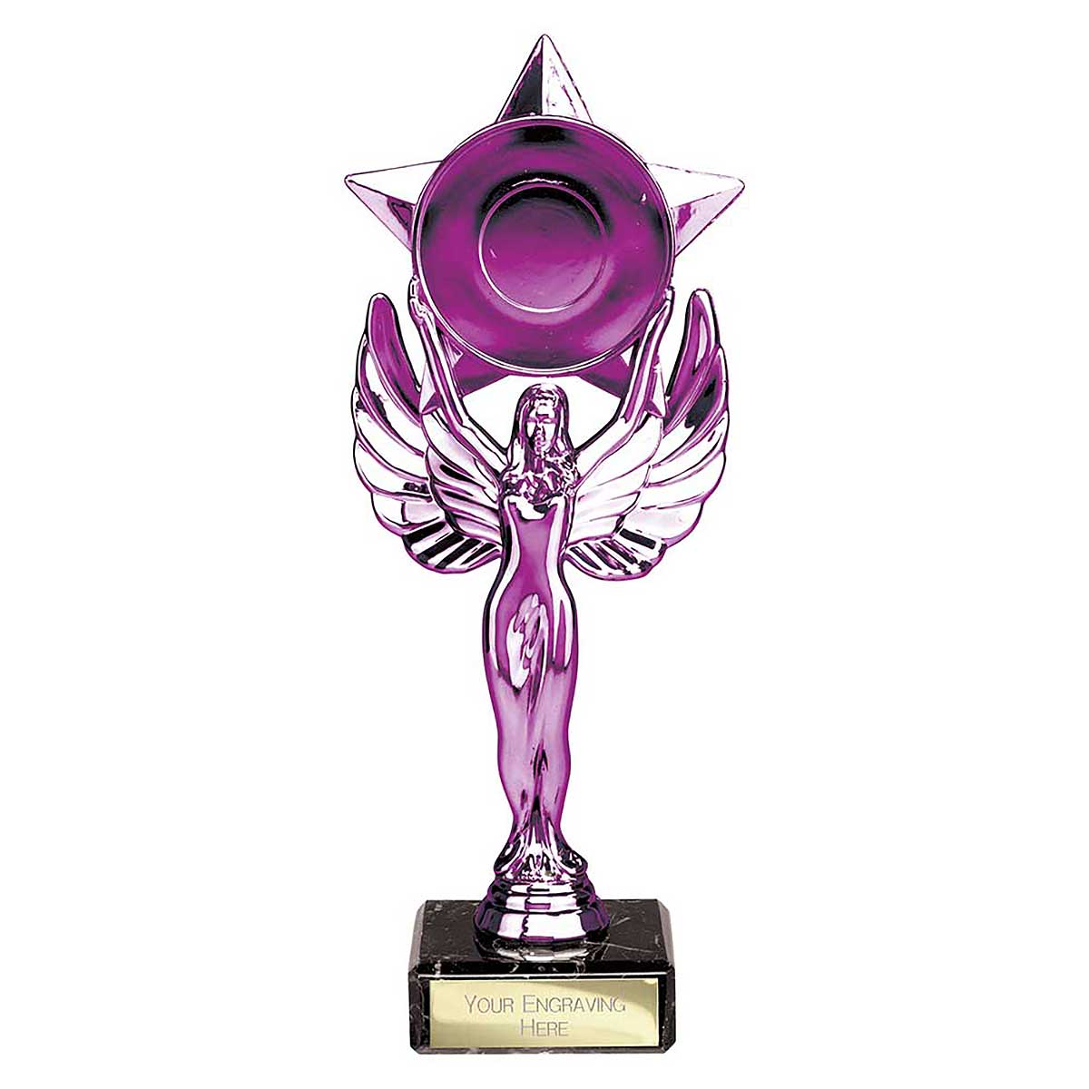 Purple Victory Star Multisport Trophy 210mm high Purple plastic winged figure on a black marble baseEngraving plate and club badge can be applied to the front