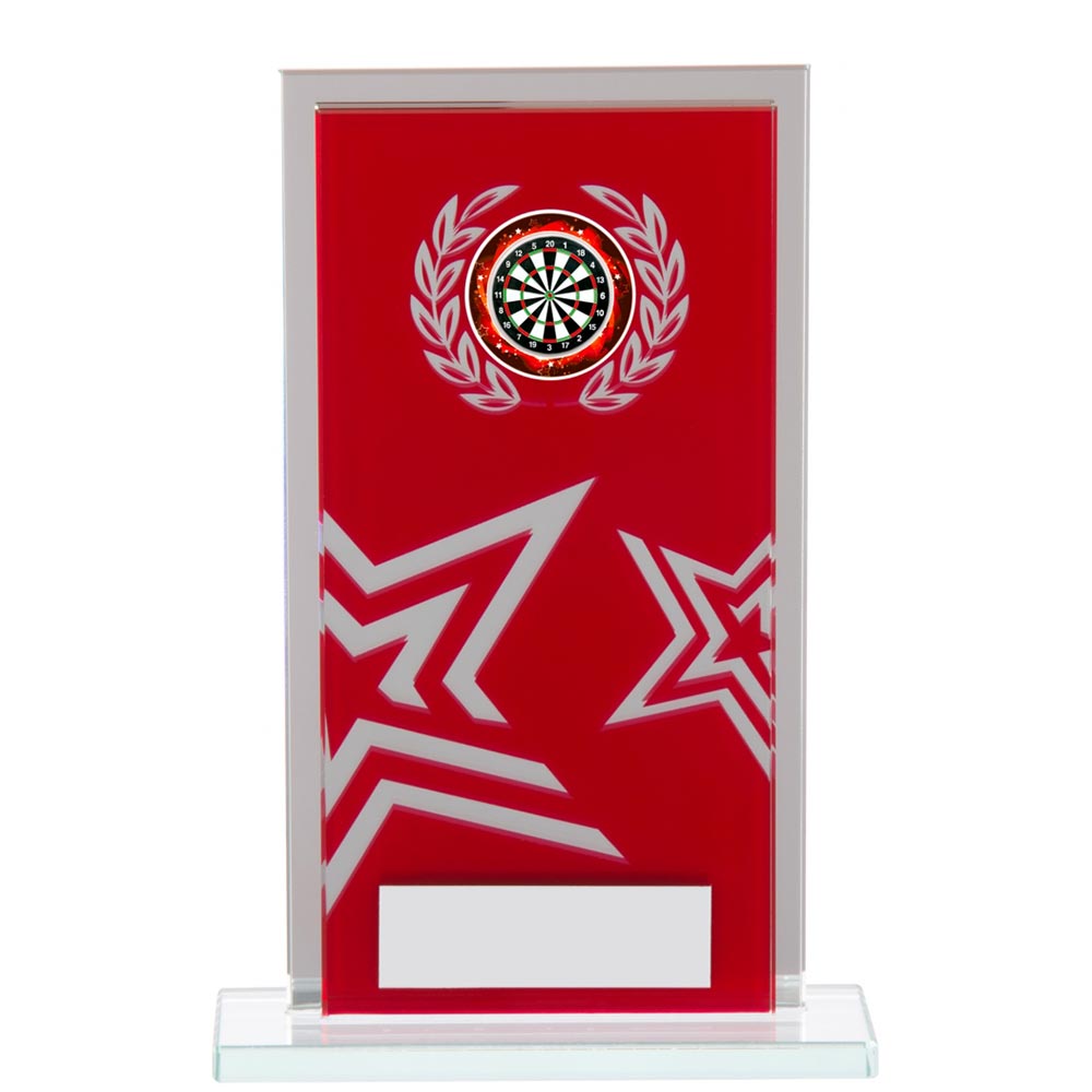 Rectangular red award 150mm high with silver star and laurel detail Stands on a 5mm thick glass base