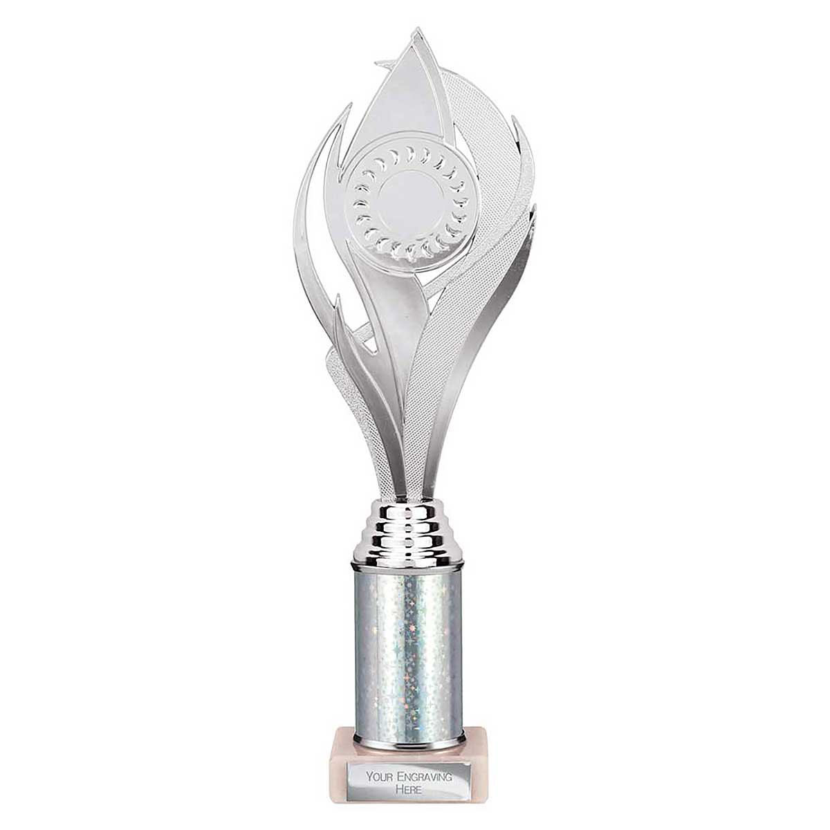 Silver Super Volcano Trophy 310mm high Moulded plastic design on a superstar glitter column and stone base Engraving plate and club badge can be applied to the front