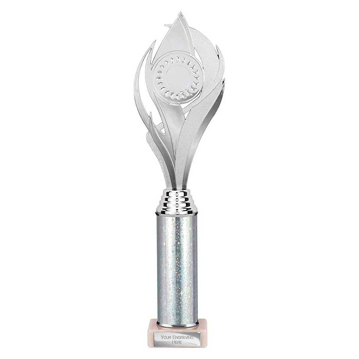 Silver Super Volcano Trophy 360mm high Moulded plastic design on a superstar glitter column and stone base Engraving plate and club badge can be applied to the front