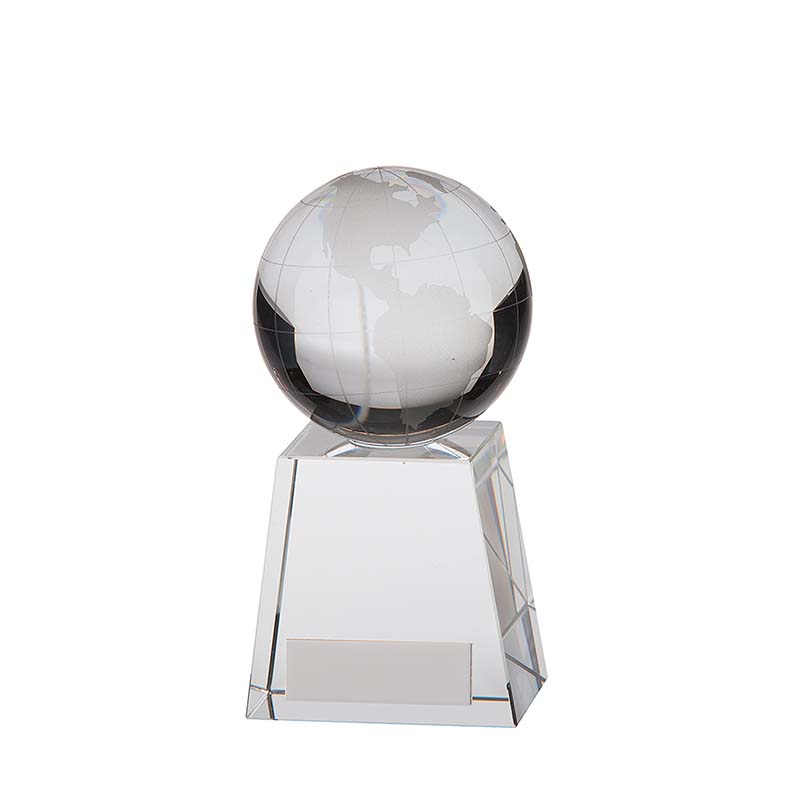 Voyager Globe Award 125mm highHigh quality crystal award features globe sat atop an upight sloping rectangular columnComes in a presentation boxPrice excludes engraving