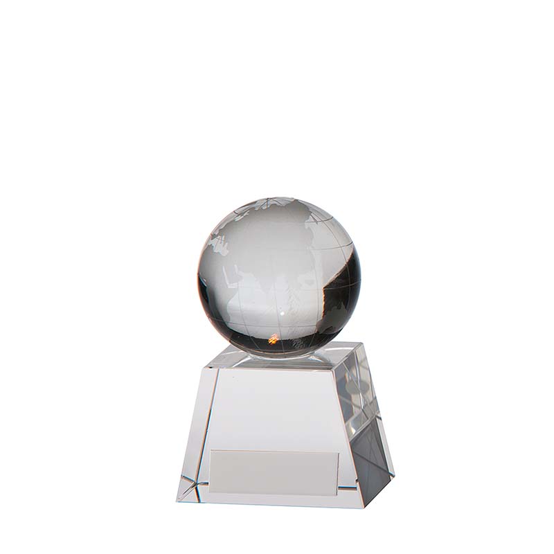 Voyager Globe Award 95mm highHigh quality crystal award features globe sat atop an upight sloping rectangular columnComes in a presentation boxPrice excludes engraving