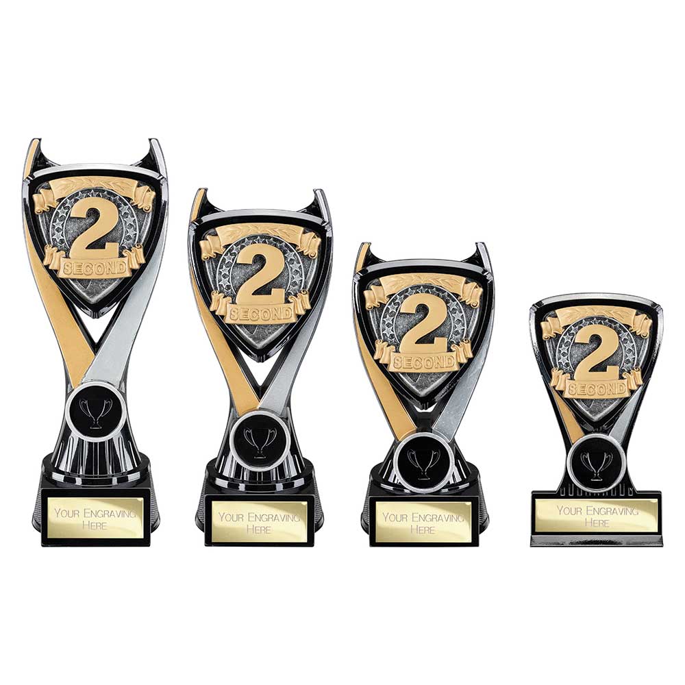 Wolverine 2nd Trophy 130mm highFeatures gold numeral and lettering on a gold, black and silver standEngraving plate and badge can be applied to front